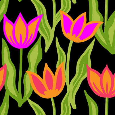 Vad passar väl bättre så här års än ett mönster med Jättetulpaner för Kinnamark. Mönstret ovan visas på hela tygbredden, 150 cm. Produceras av Kinnamark. Finns också i en fräck färgställning med svart botten.
