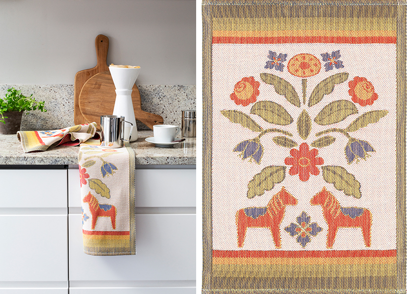 Mönstret ”Lisbet” jag designat för Klippan Yllefabrik och som jag gett namn till efter min syster Lisa, Elisabet, på 40/50-talet även kallad för Lisbet (kärt barn har många namn). Det är just den tidens förklädesmönster som inspirerat mig. Mönstret finns på ett flertal produkter som just förkläden, löpare, handdukar, pappersservetter och brickor i olika storlekar. Det finns även som metervara om man vill sy någonting själv. Ett mönster med mycket nostalgi som påminner om saftkalas i bersån.