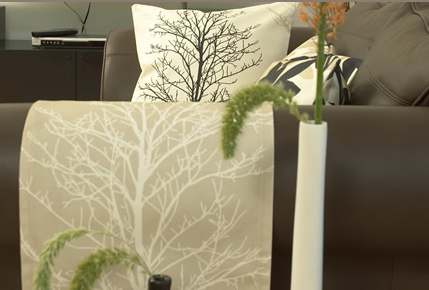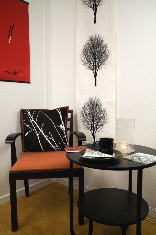 Så här såg mönstret ut som Svanefors textil köpte. Det är en rönn som växer utanför Rotebrokyrkan, mönstret kallades av Svanefors lustigt nog Björk. Det ses i bakgrunden nedan som panel.