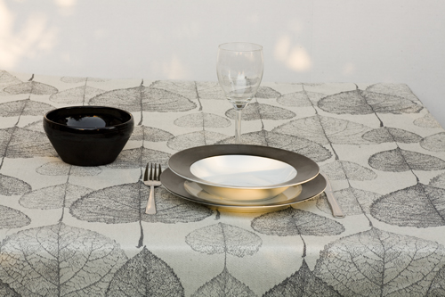 Jag hittade ett lövskelett med tydliga bladnerver och det inspirerade mig till mönstret Lindelöv som Ekelunds Linneväveri tolkade så fint i sin jaquardteknik. Det blev en handduk också med ett stort löv samt en löpare. Löparen finns fortfarande i produktion.